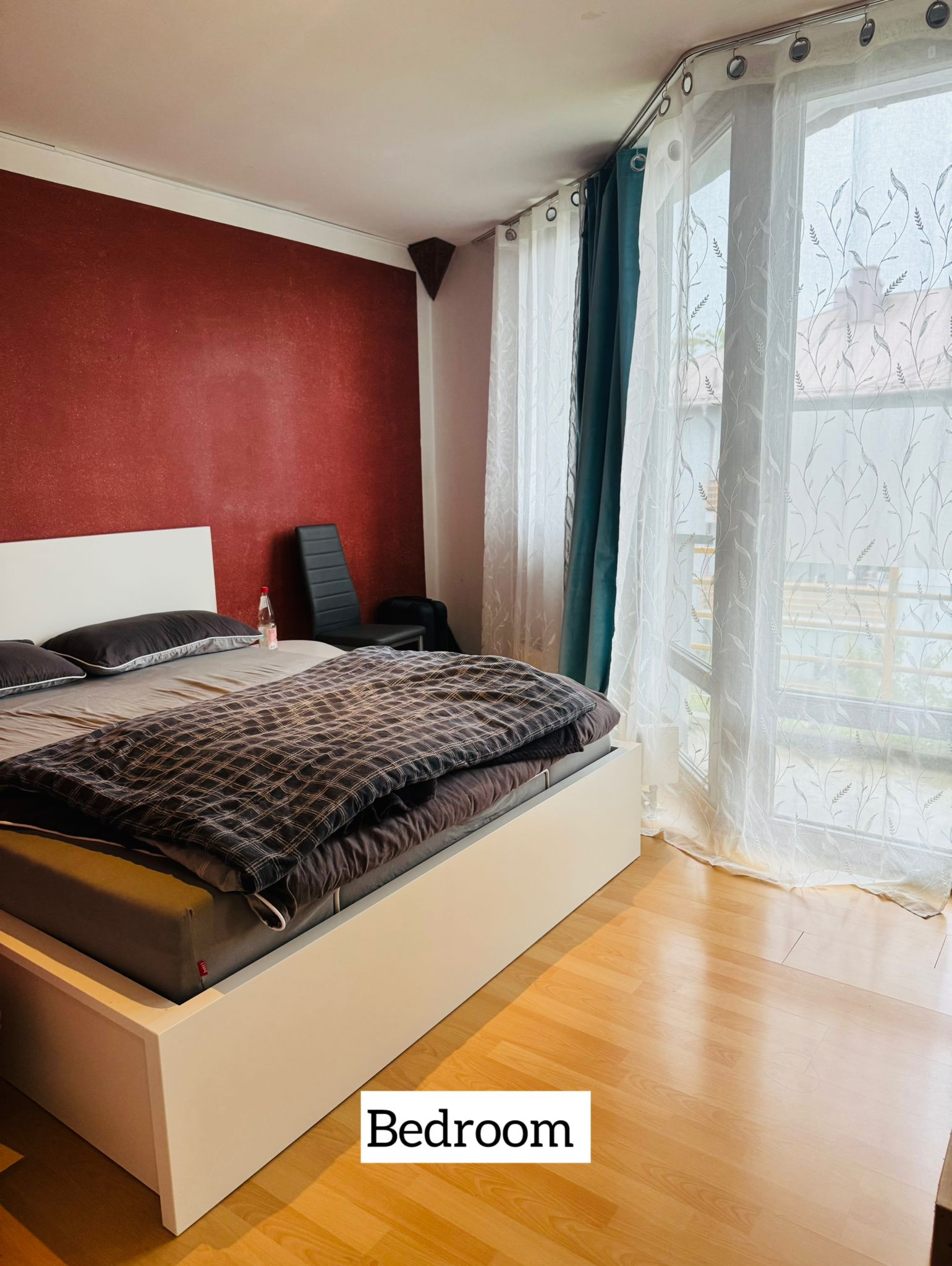 Das Schlafzimmer dient als ruhiger Rückzugsort und ist großzügig geschnitten. Von hier aus haben Sie direkten Zugang zu einem weiteren Balkon, der zu entspannten Momenten im Freien einlädt.