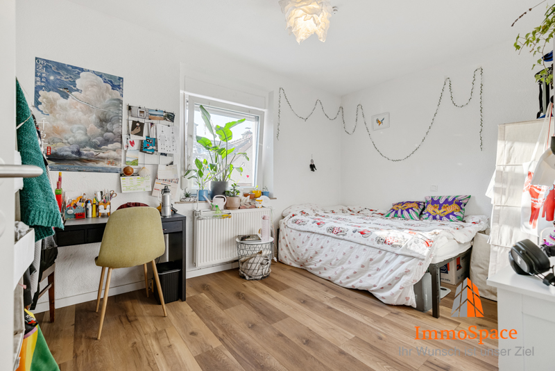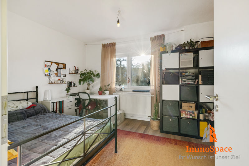 Direkt daneben befindet sich das Kinderzimmer, das ideal als Spiel- oder Schlafzimmer genutzt werden kann, aber auch als Homeoffice oder Gästezimmer eine perfekte Alternative darstellt.