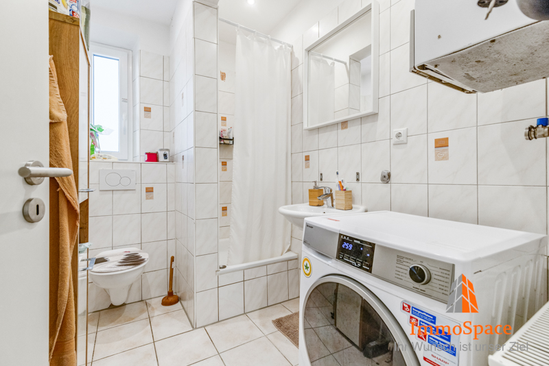 – Badezimmer mit Dusche, Fenster & eigenem Waschmaschinenanschluss