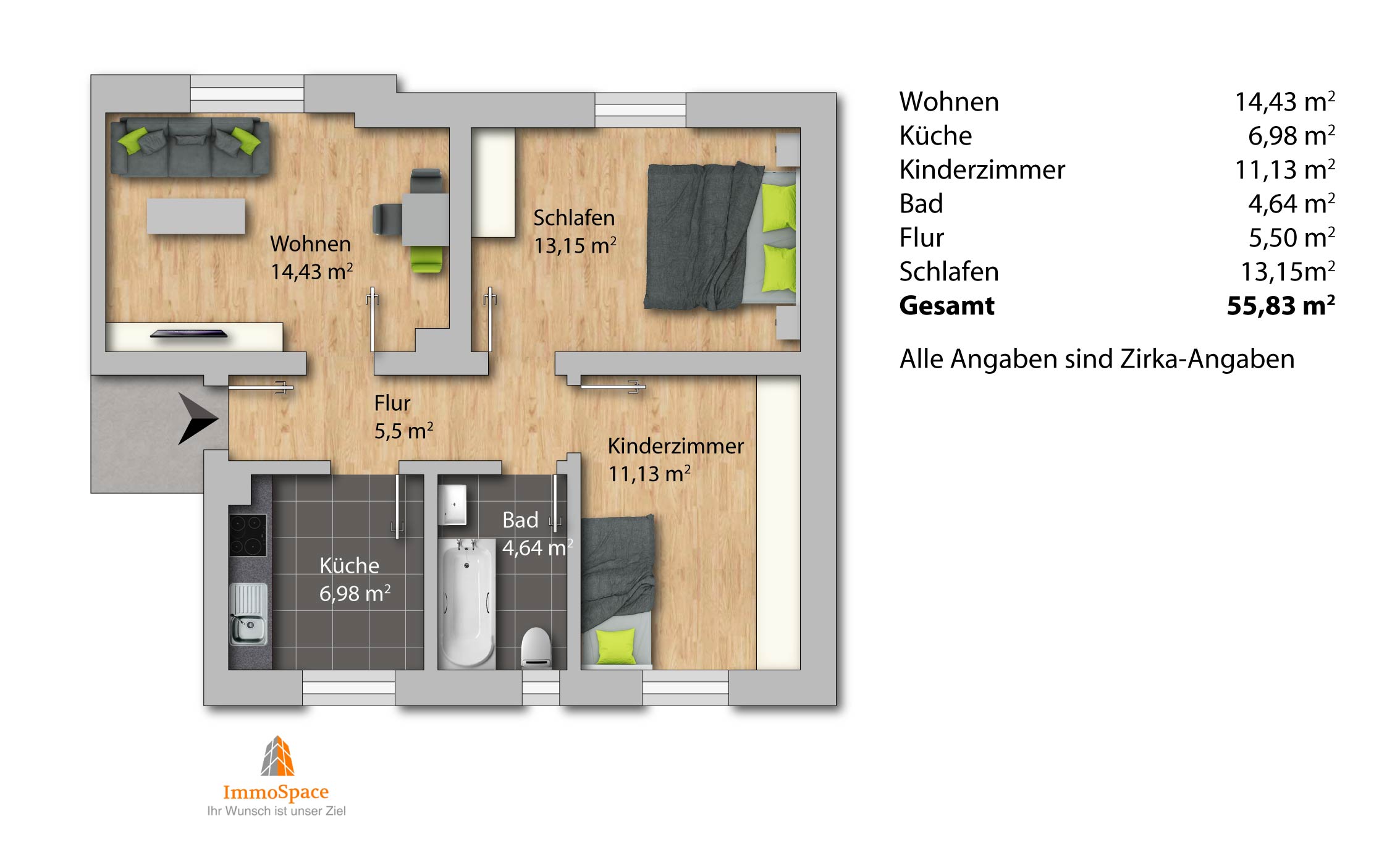 - Wohnfläche ca. 56 m²