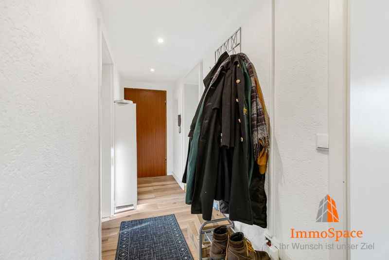 Beim Betreten der Wohnung gelangt man in einen großzügigen Flur, der genügend Platz für eine Garderobe bietet und durch seine zentrale Lage alle Räume optimal verbindet.
