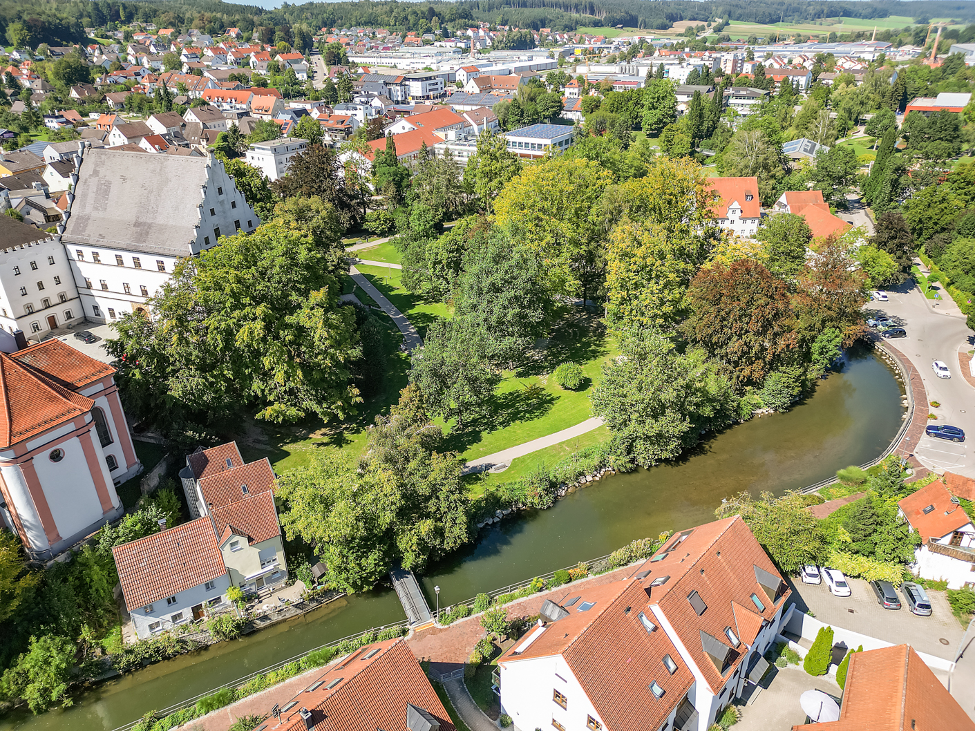 Das Haus befindet sich in einer ruhigen und dennoch sehr zentralen Wohnlage von Krumbach im schwäbischen Landkreis Günzburg. Die direkte Umgebung ist geprägt von viel Grün und bietet mit einem angrenzenden Park samt Teichanlage und Flusslauf eine außergewöhnlich hohe Wohnqualität.
