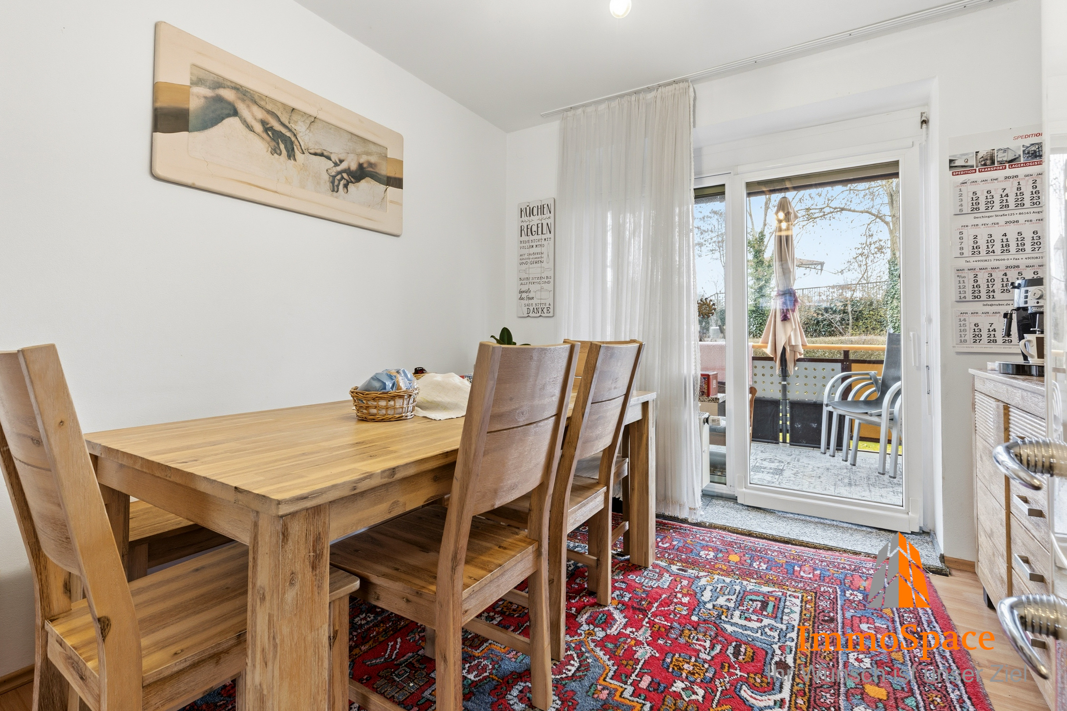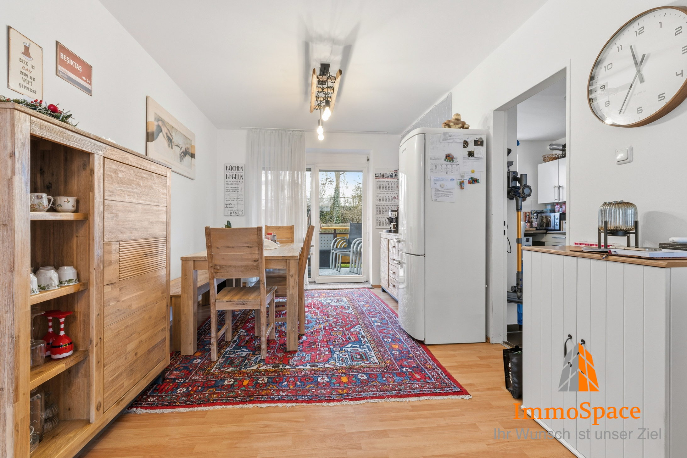 Der Mittelpunkt der Wohnung ist das weitläufige Wohn- und Esszimmer, das durch seine offene Gestaltung und die großen Fenster eine lichtdurchflutete, freundliche Atmosphäre vermittelt. Von hier aus gelangen Sie direkt auf den Balkon, der an sonnigen Tagen ein erholsamer Rückzugsort im Freien ist – perfekt für entspannte Stunden oder kleine Auszeiten zwischendurch.