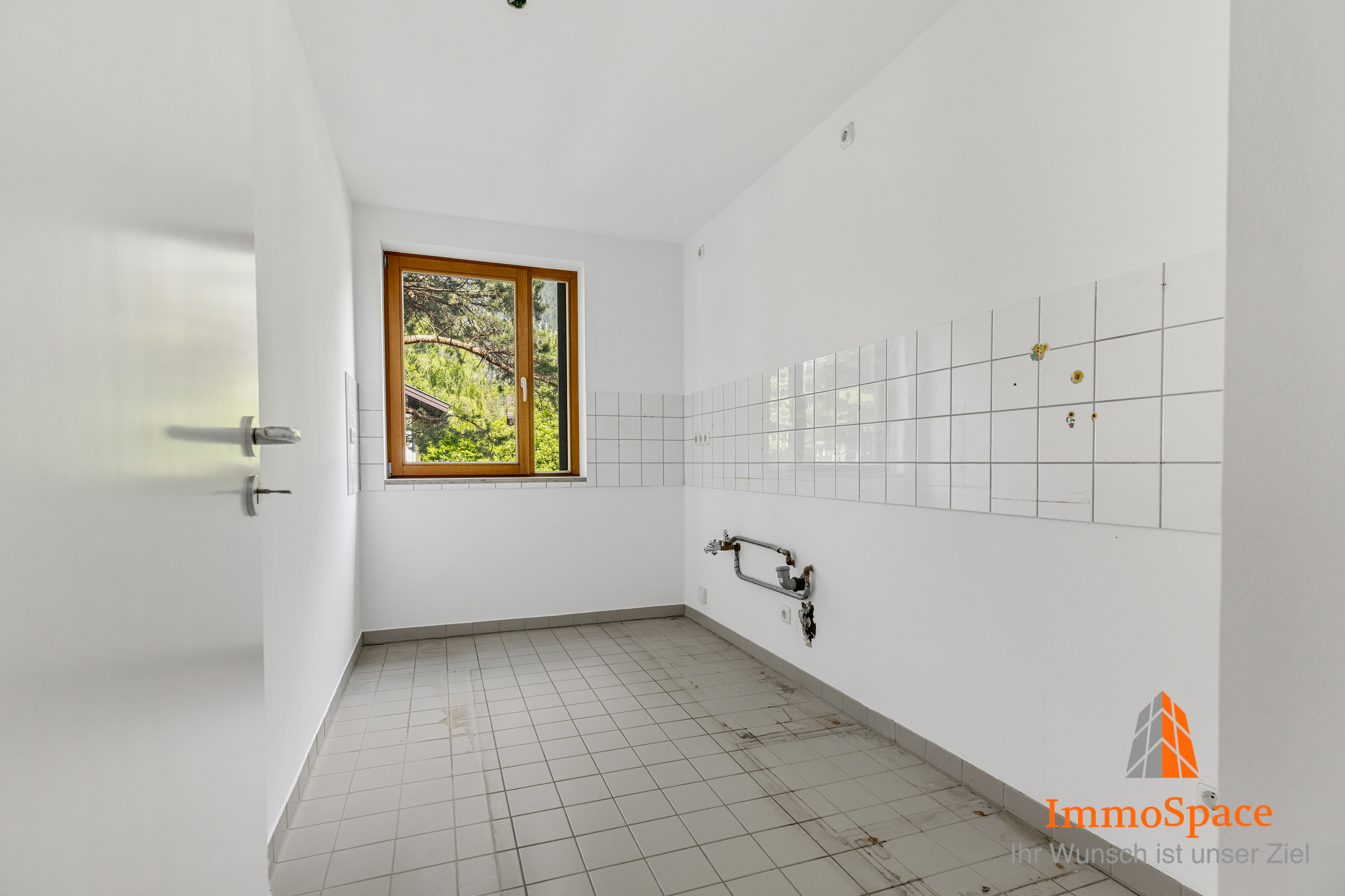 Die Küche ist praktisch geschnitten, mit genügend Raum für eine moderne Einbauküche und alle notwendigen Geräte. Eine separate Speisekammer bietet zusätzlichen Stauraum.