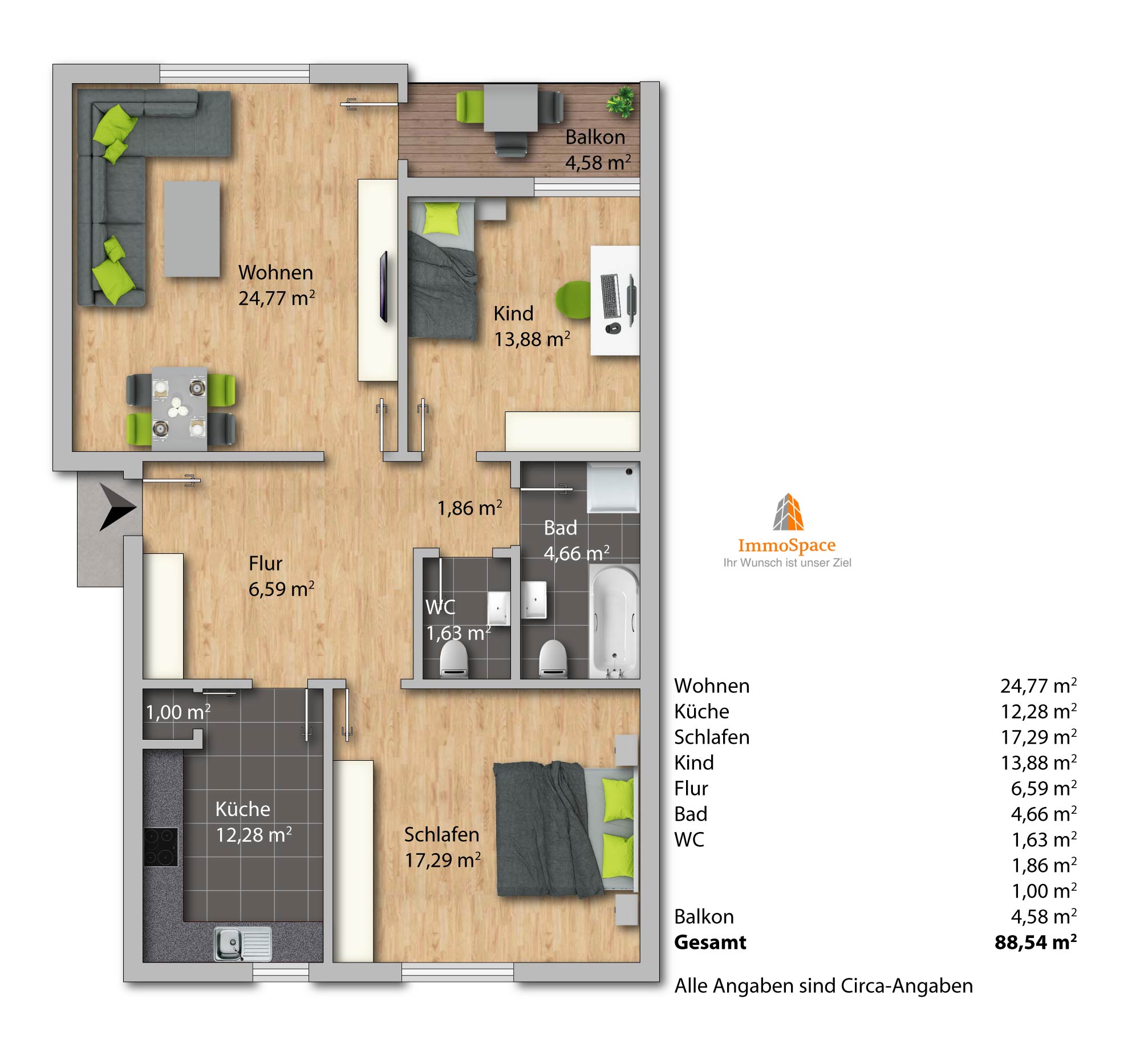Alle Angaben nach bestem Wissen. Irrtum und Zwischenverkauf vorbehalten. Der Käufer zahlt im Erfolgsfall an die Firma ImmoSpace GmbH eine Käufer-Maklerprovision in Höhe von 2,50 % zzgl. der gesetzl. MwSt. Die Provision errechnet sich aus dem beurkundeten Kaufpreis. Dieses Exposé ist eine Vorinformation, als Rechtsgrundlage gilt allein der notariell abgeschlossene Kaufvertrag.