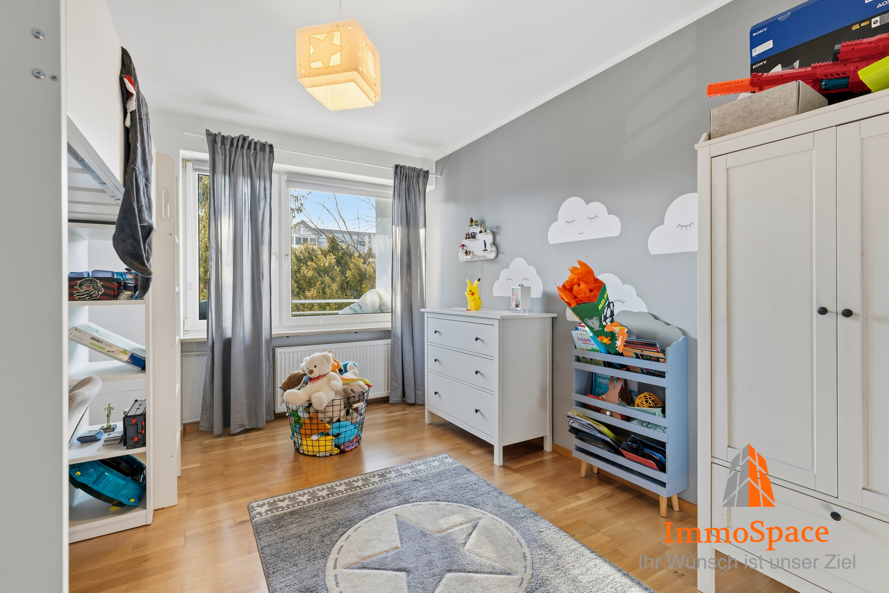 Das Kinderzimmer bzw. Arbeitszimmer ist ebenfalls hell und freundlich gestaltet – ideal für Familien oder als Homeoffice.