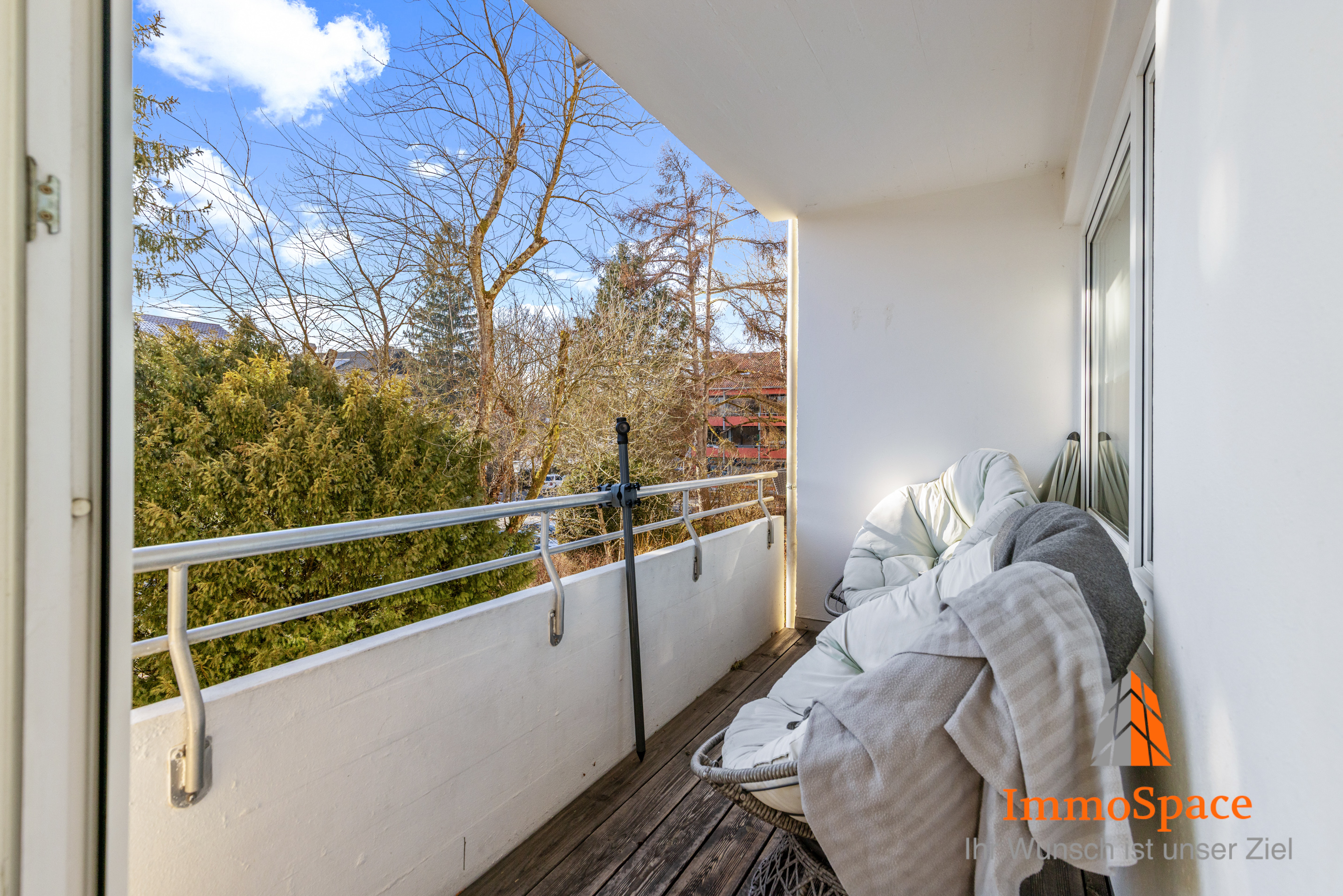 Vom Wohnzimmer aus gelangen Sie auf den Balkon, der zu entspannten Stunden im Freien einlädt – ideal für ein Frühstück an der frischen Luft oder den Abend bei einem Glas Wein.