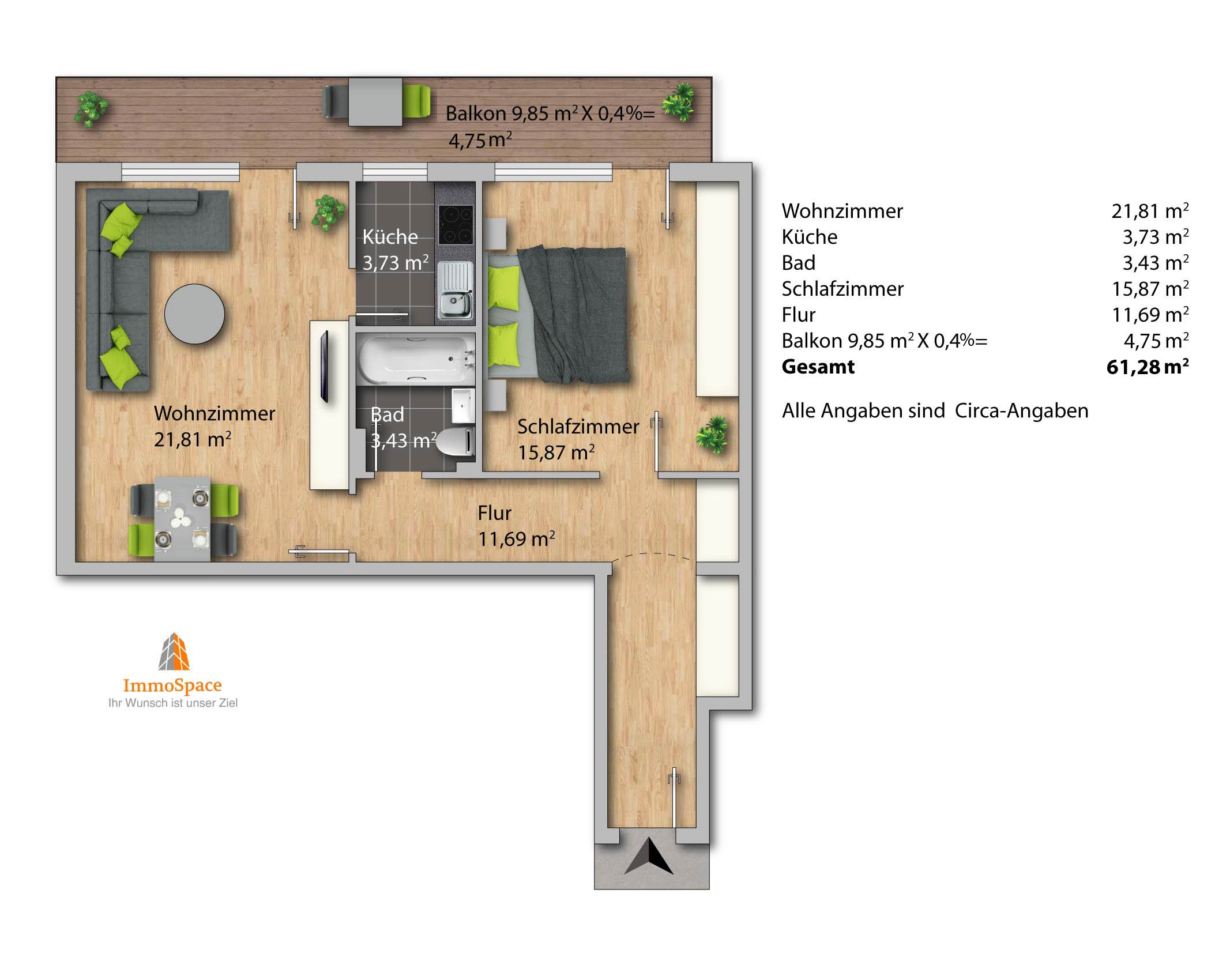 - Wohnfläche ca. 61 m²