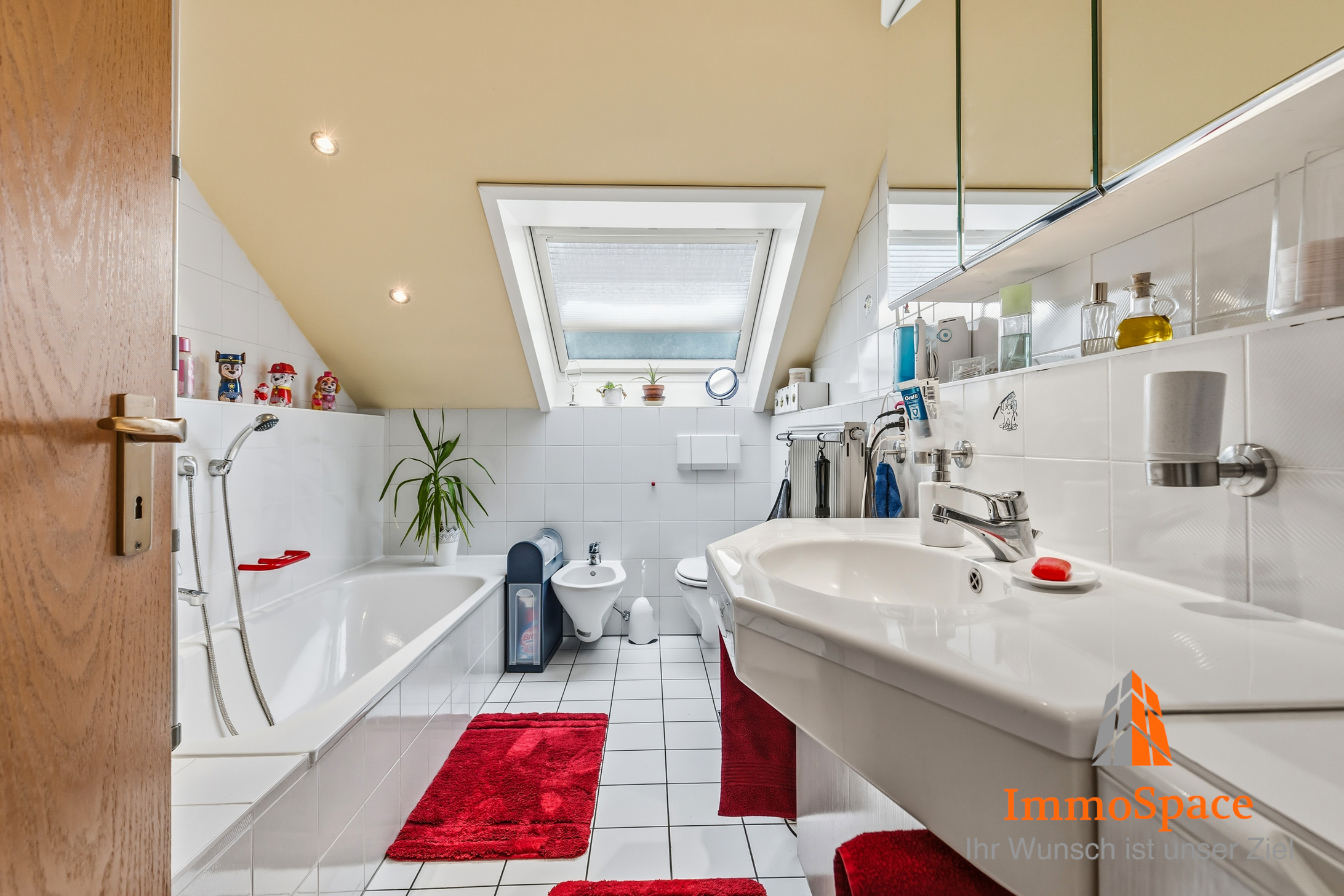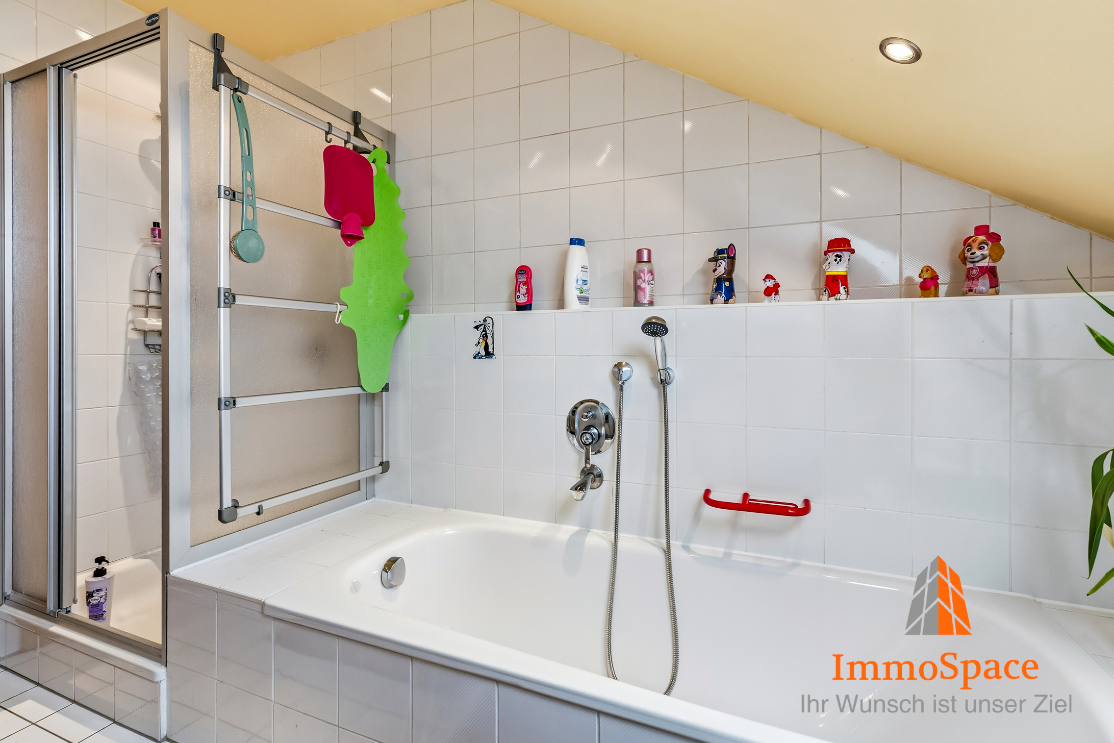Ein weiteres Bad im Dachgeschoss ergänzt das großzügige Raumangebot.