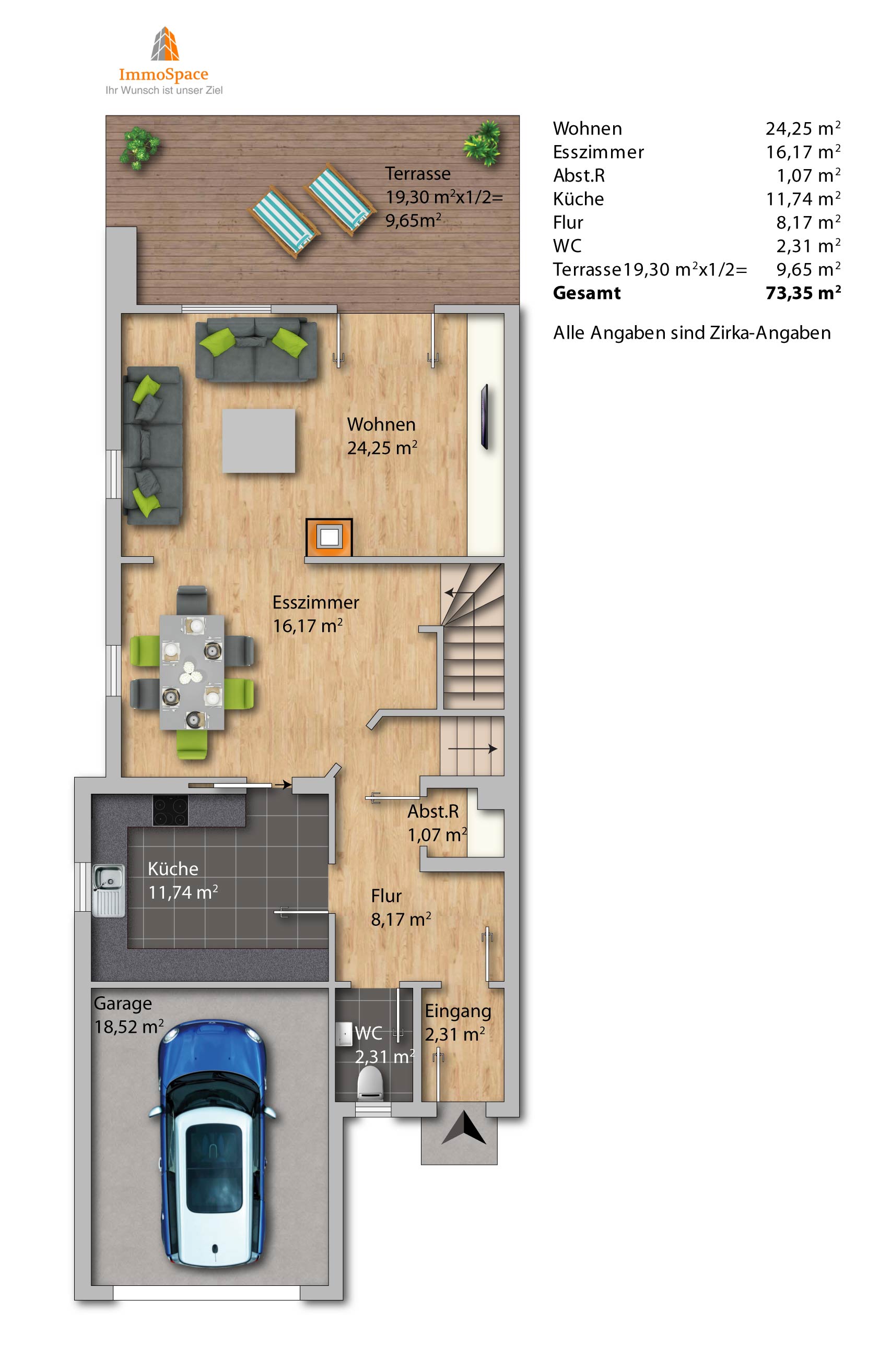 Alle Angaben nach bestem Wissen. Irrtum und Zwischenverkauf vorbehalten. Der Käufer zahlt im Erfolgsfall an die Firma ImmoSpace GmbH eine Käufer-Maklerprovision in Höhe von 2,50 % zzgl. der gesetzl. MwSt.. Die Provision errechnet sich aus dem beurkundeten Kaufpreis. Dieses Exposé ist eine Vorinformation, als Rechtsgrundlage gilt allein der notariell abgeschlossene Kaufvertrag.