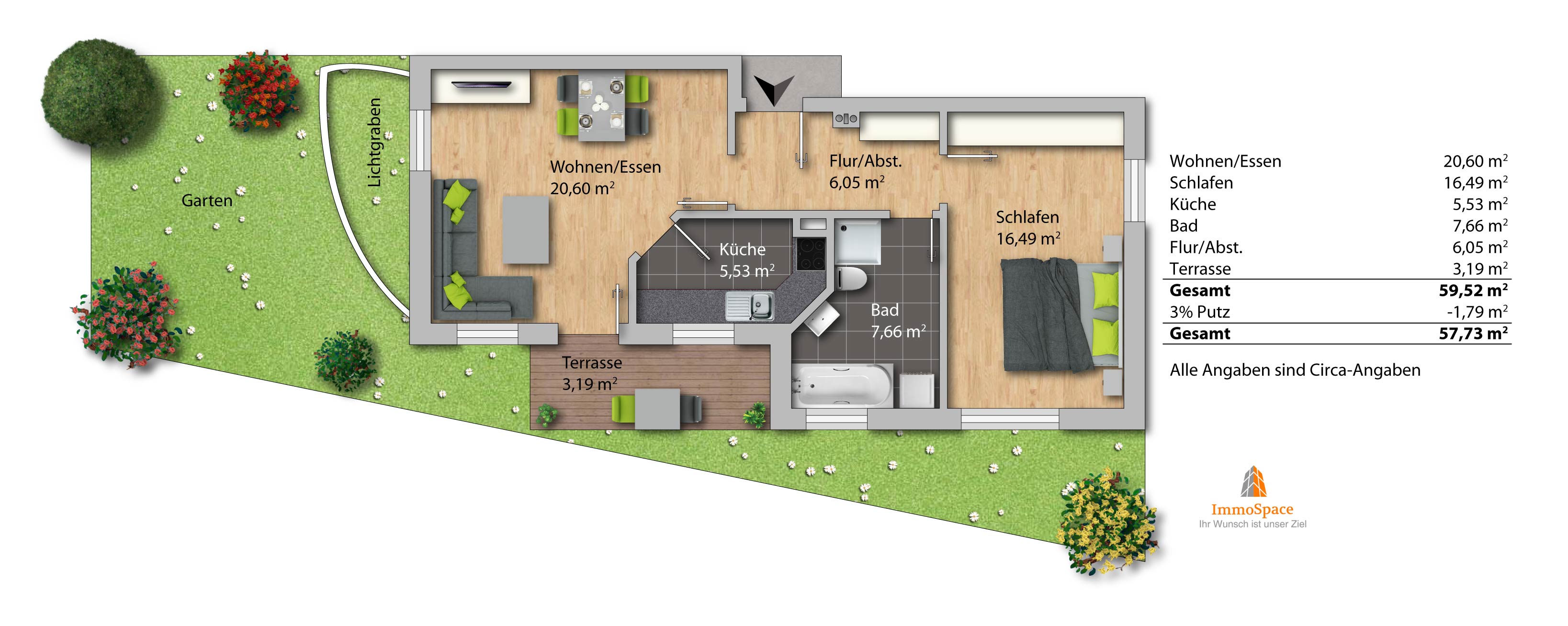 Alle Angaben nach bestem Wissen. Irrtum und Zwischenverkauf vorbehalten. Der Käufer zahlt im Erfolgsfall an die Firma ImmoSpace GmbH eine Käufer-Maklerprovision in Höhe von 1,99 % zzgl. gesetzlicher MwSt. Die Provision errechnet sich aus dem beurkundeten Kaufpreis. Dieses Exposé ist eine Vorinformation, als Rechtsgrundlage gilt allein der notariell abgeschlossene Kaufvertrag.