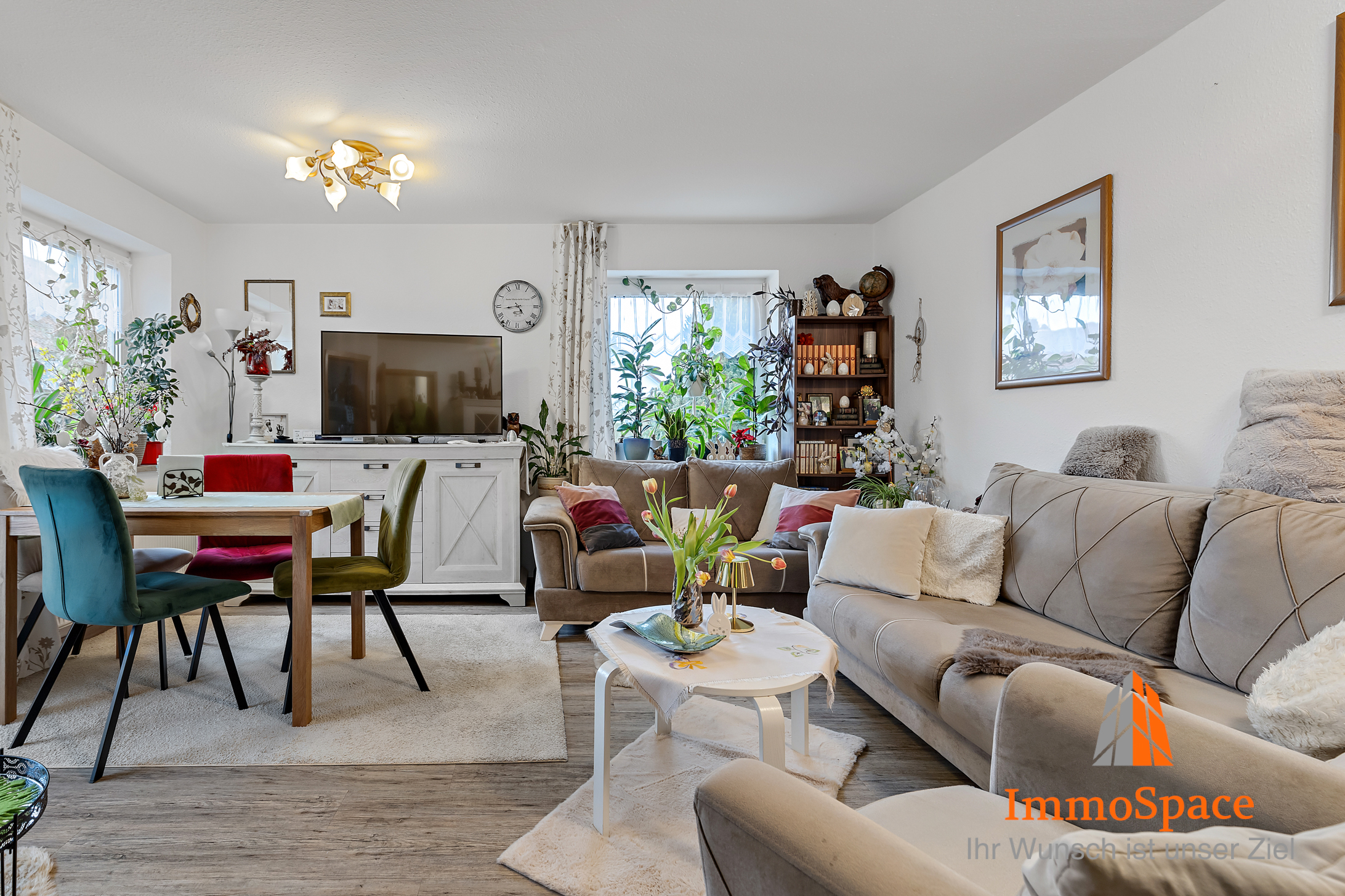Der großzügig geschnittene Wohn- und Essbereich bildet das Herzstück der Wohnung. Große Fensterflächen sorgen hier für viel Tageslicht und eine angenehme Wohnatmosphäre.